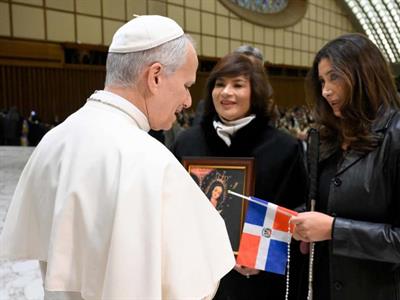 El Papa comentó que “el arte ha sido el milagro que Dios me ha regalado en la vida”, mientras sostiene una pintura de la Virgen de la Altagracia Peregrina. Esta frase no solo refleja la importancia del arte y la música para él, sino también cómo estos pueden ser herramientas poderosas para superar las barreras entre culturas y religiones.